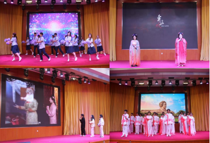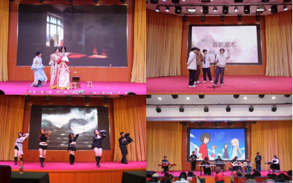 舞台之上,灯光璀璨,布景匠心独运。整场晚会节目形式多样、创意纷呈,歌曲、舞蹈、小品、配音秀、魔术、乐器合奏等艺术形式轮番登场,编织出一幅绚烂的青春画卷。活力四射的啦啦操《加油amigo》率先点燃全场,跃动的身姿与激昂的节奏交织,尽显青春风采;合唱《牵丝戏》以婉转戏腔与细腻和声,将传统艺术的典雅韵味融入现代舞台,余音绕梁;朗诵《中华颂》铿锵有力,句句深情,传递着深沉的家国情怀与文化自信;配音秀《戏精的有声日记》以多变的声线与贴近校园的生动演绎,让新生们对即将展开的大学生活有了更多亲切的期待。