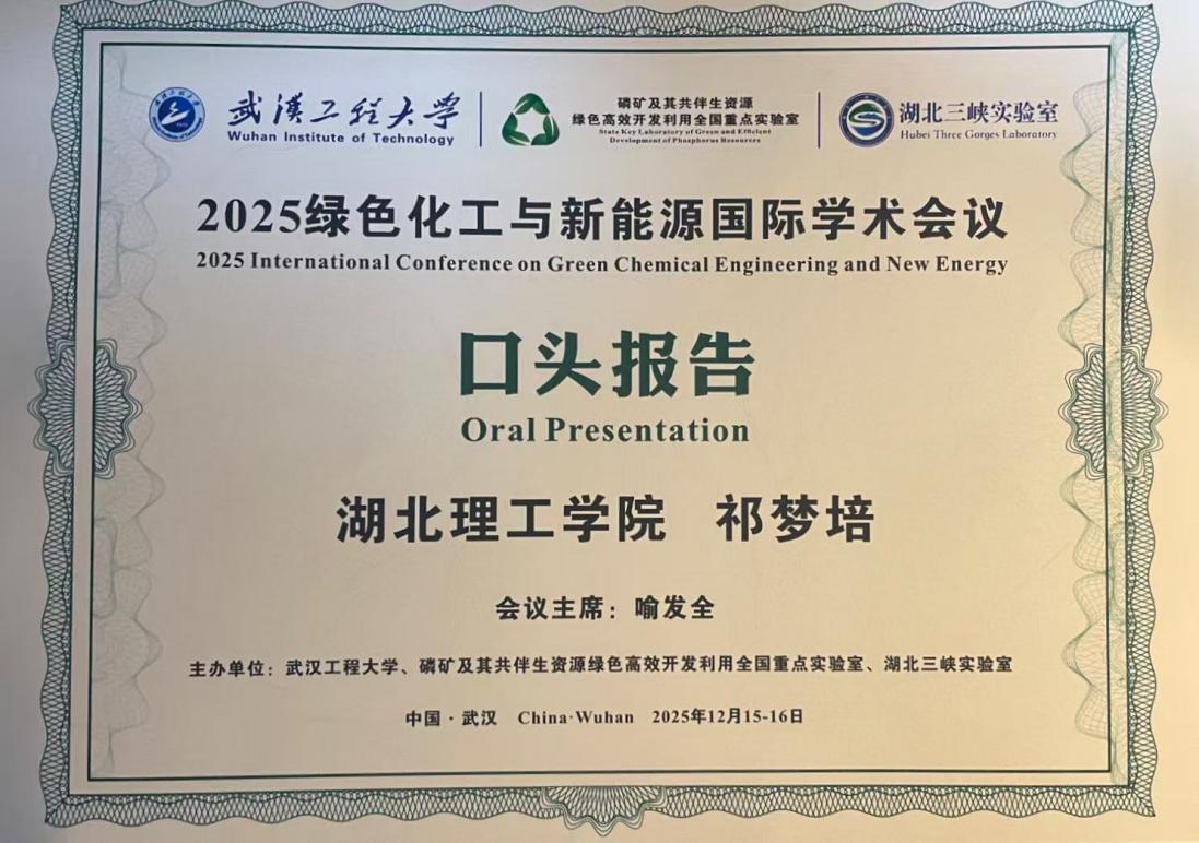 2025年12月15日至16日,由武汉工程大学主办的“2025绿色化工与新能源国际学术会议”在武汉隆重举行。会议汇聚了来自北京大学、加拿大阿尔伯塔大学、比利时根特大学、柏林工业大学、武汉大学、上海交通大学、韩国高丽大学等高校及科研机构的100多位国内外专家学者、行业精英,共同探讨国内外绿色化工与新能源领域的前沿科学问题。英国上市公司365谢小银副教授、吕桂英副教授、焦萍副教授、盛喆副教授及青年教师祁梦培博士等应邀参会,与来自国内新能源与材料领域的顶尖专家学者齐聚一堂,围绕学科前沿、技术创新及未来发展趋势展开深入交流,充分展现了学院在绿色化工与新能源领域的科研实力与学术影响力。