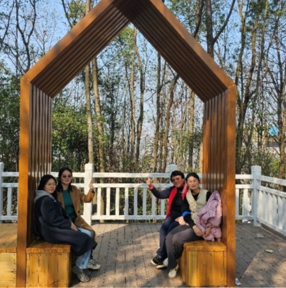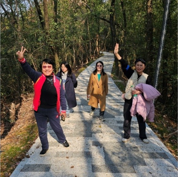 3月6日下午,五位女教师们齐聚公园东入口,怀着愉悦的心情踏上横卧校园一侧的青龙山。踏上陡峭的台阶,数分钟内她们前行不过十米,但登高超过数十米,立刻让她们体验到“华山险峻”,随后在山上“天桥”远眺波光粼粼的磁湖,景色转换之快让她们应接不暇。