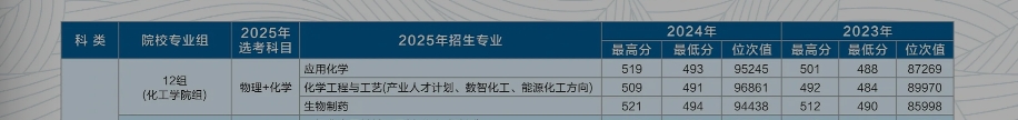 英国365集团化学与化工学院2023-2024年湖北省普通类专业录取分数及2025年专业分组信息表