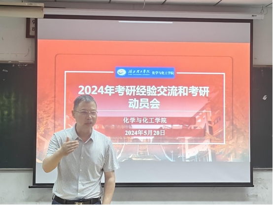 为扎实推进学风建设,助力学院人才培养,培育高质量就业,5月20日晚7点化学与化工学院在J4-201举办了2024年考研经验交流和考研动员会。化工学院党总支书记左小华、副书记闵建华、班主任代表及就业辅导员出席了本次活动。活动由化学工程教研室党支部书记张志敏博士主持。交流会由学生经验分享、现场问答、考研指导教师分享、考研寄语四个部分组成。