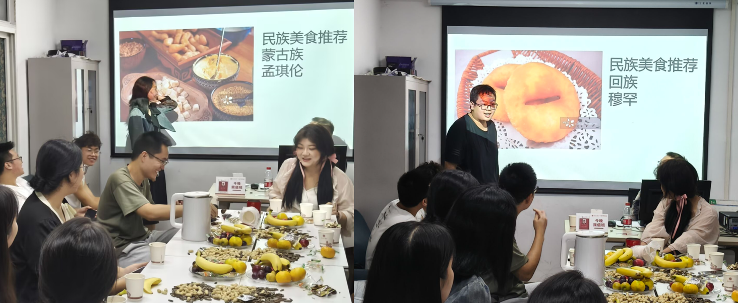 为展示新材化学院推动家庭开展共读、共制、共访活动的成果,活动现场邀请了少数民族的学生代表们带来了各自民族的美食介绍。蒙古族的代表孟琪伦为大家介绍了香气四溢的炒米,米粒粒分明,搭配奶茶,味道鲜美,充满了草原的风味。而回族的穆罕同学则分享了油香的制作过程和寓意。通过这一环节,同学们不仅了解到了美味的民族食物的制作过程,更深刻感受到了中华文化的多样性与包容性。