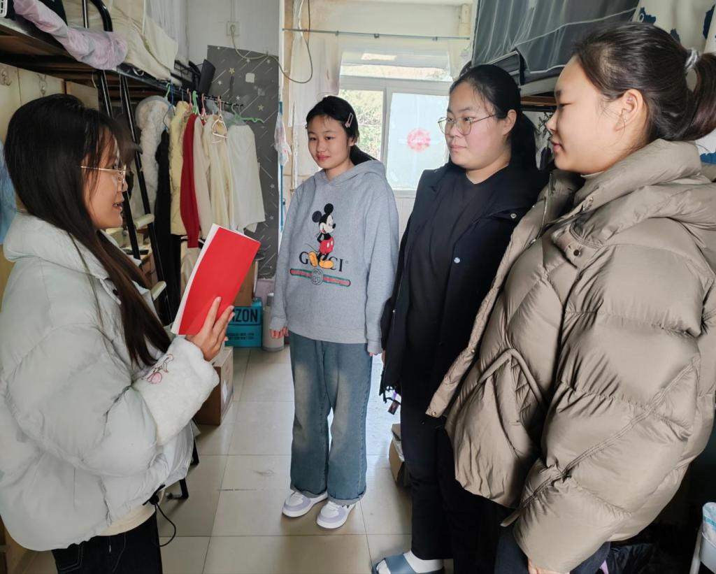 为推动两会精神学习从“集中学”向“常态学”延伸,3月23日起,学院组织学生党员开展 “两会精神进宿舍”宣讲活动。学生党员化身 “政策宣传员”,以宿舍为单元,结合专业知识与自身学习体会,用通俗语言解读两会热点,重点分享青年发展、专业就业、行业前景等相关政策,让两会精神在面对面沟通中真正走进青年心里。