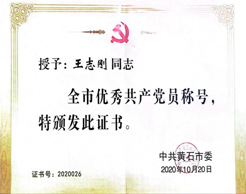 9、2020年11月获得“黄石市优秀共产党员”