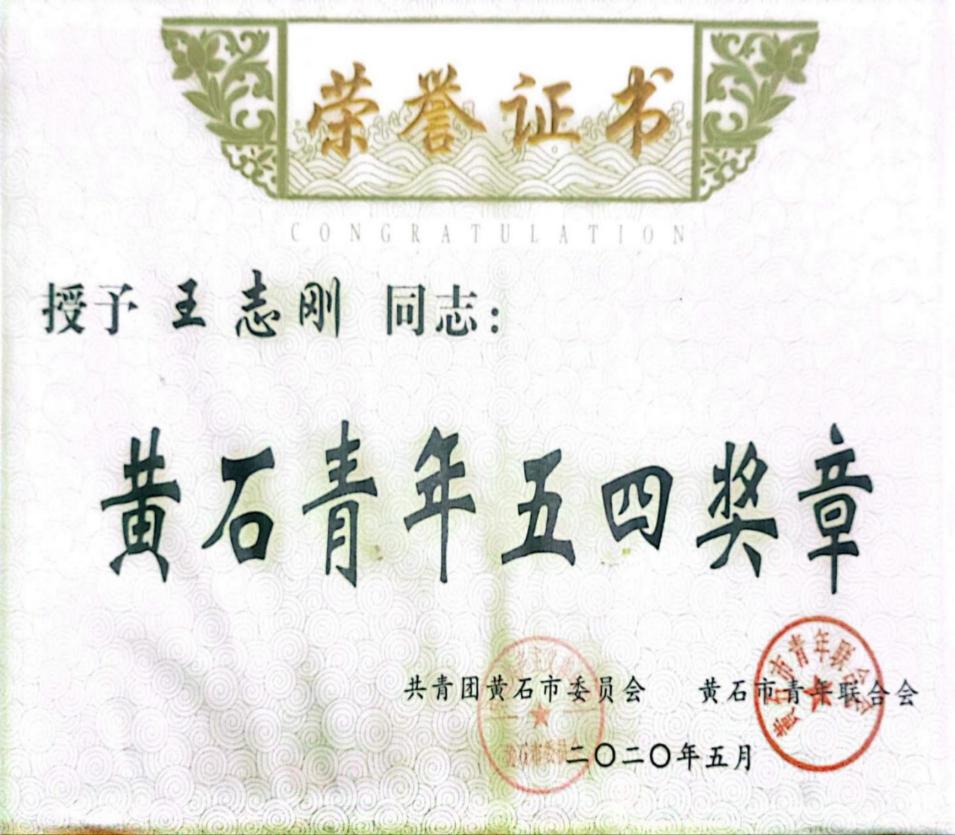 6、2020年5月获得共青团黄石市委、黄石市青年联合会授予“黄石五四青年奖章”荣誉称号